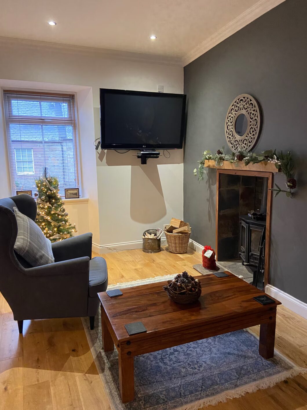 The large spacious living area has a double daybed sleeping 2 guests , dining area and wingback chair all making the most of the log burner. Both TVs in the cottage have Amazon Firestick tv and guests may access their own Netflix accounts using the WiFi.